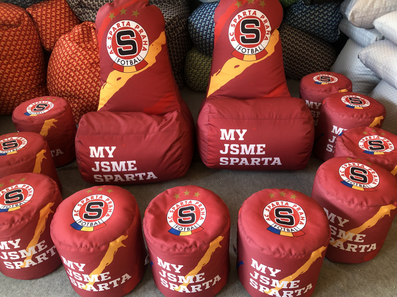 Pro Spartu jsme vyrobili širokou škálu doplňků a sedací vaky s taburety.